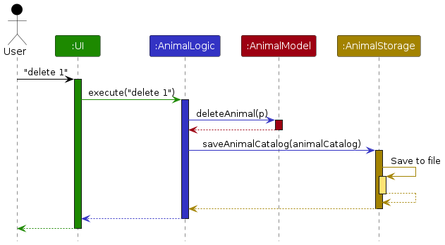 Note: The lifeline for DeleteAnimalCommandParser