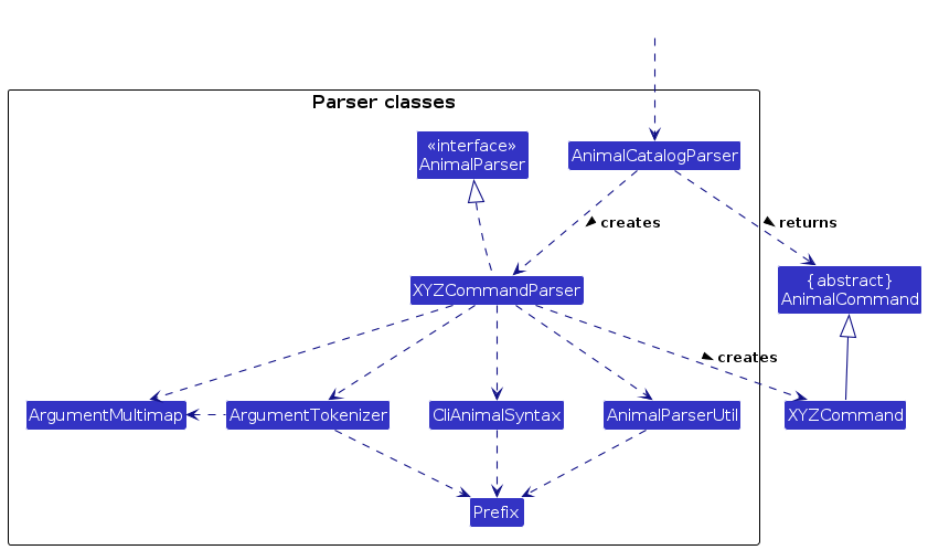 (omitted from the class diagram above) that are used for parsing a user command: